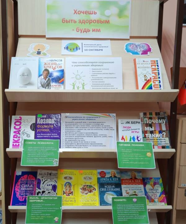 В преддверии Всемирного дня психического здоровья в библиотеке села Пудино открыта книжная выставка, призванная привлечь внимание к важности психологического благополучия. Она предоставит читателям ценные ресурсы для самопознания и личностного роста. На выставке представлены книги доктора Джо Диспенза «Сила познания», Анатолия Некрасова «Жизнь без кризисов» и «Мужчина и женщина», Луизы Л. Хей «Исцели свое познание» и другие.