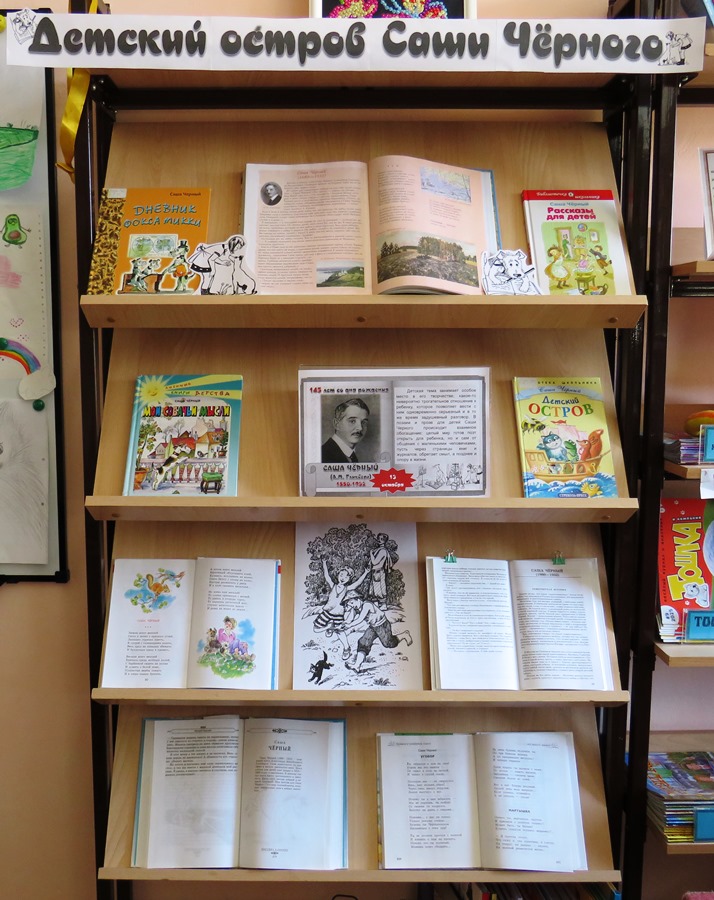 В преддверии 145-летия со дня рождения Саши Черного, тонкого лирика и любимца детской аудитории, Центральная библиотека представляет книжную выставку «Детский остров Саши Черного». Эта выставка – путешествие в мир детства, увиденный глазами поэта, полный юмора, сочувствия и искренней любви к маленьким читателям.