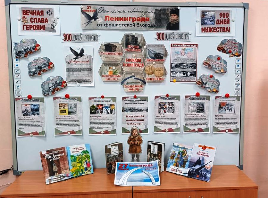 В память о величайшем мужестве и несгибаемой силе духа в Центральной библиотеке организована информационно-книжная выставка-напоминание «99 дней во имя жизни», посвященная Дню полного освобождения Ленинграда от фашистской блокады.