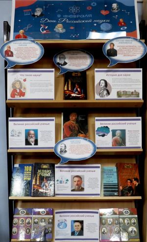 К знаменательному дню Центральная библиотека подготовила книжную выставку, на которой представлены издания об истории российской науки, о выдающихся учёных, их великих свершениях, а также книги о направлениях развития современной науки.